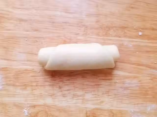 10、十分鐘後,取一個面卷,用手拍扁後,用擀麵杖擀開。溫馨提示,大家擀開的時候,力氣不要太大,稍微輕一點,否則容易擀破皮,破皮的後果,會直接導致成品混酥,所以大家切記掌握好力度