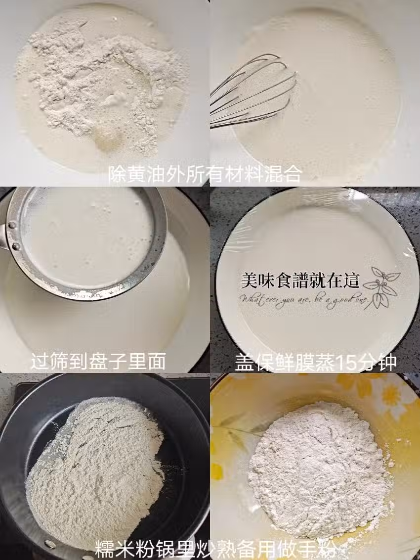 另外平底鍋里放20克生糯米粉小火炒熟,顏色微微發黃就好了,備用做手粉。
