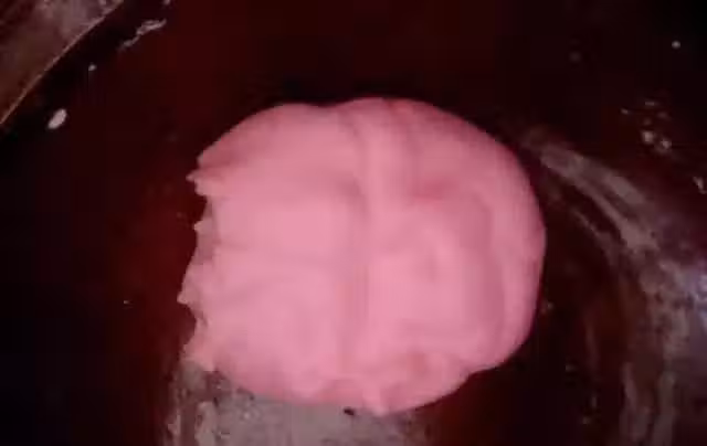 先在盆里加少許油,避免粉沾在盆上,把花紅粉撒一點在碗裡,加水攪拌,然後根據個人的分量添加適當的糯米粉加入適當的水和花紅水一起和,如果期間沾手沾盆,灑上少許的麵粉繼續和,把粉和得差不多軟軟的,有彈性即可