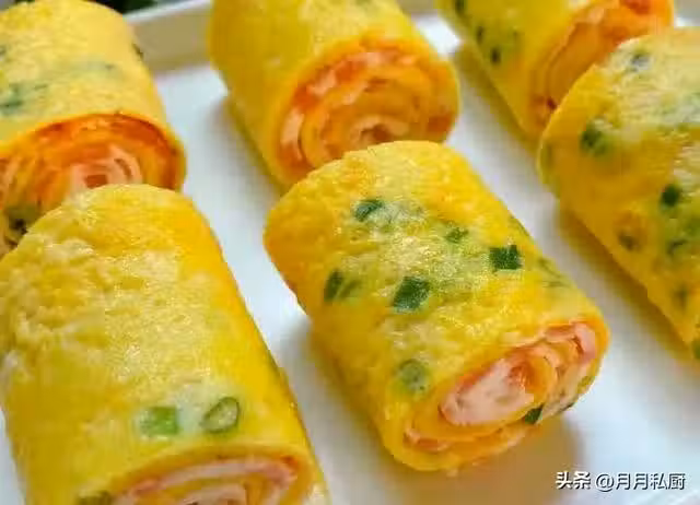 3.繼續倒入少許蛋液攤開,凝固後再從蛋卷處捲起,依次重複,直到把蛋液攤完。