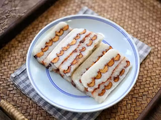 糯米切糕是我國的傳統特色小吃,年代感較為久遠,還記得小時候,只要聽到糯米切糕的叫賣聲,口水就會不由自主地在嘴裡打轉,香軟的糯米里,夾雜著各種餡料,吃上一口,簡直超滿足的,現在回想起,仍然念念不忘。