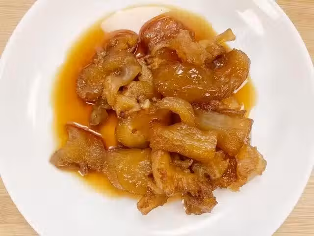 3、另起鍋倒入少許油,下入冰糖炒出糖色,這裡糖色的火候要掌握好,一旦炒過了就容易發苦。然後放入蔥姜、干辣椒、花椒、八角、白芷和桂皮翻炒幾下炒香,再加生抽、蚝油和料酒繼續翻炒均勻,接著倒入開水攪勻,糖色水就熬好了。因為後面還要用到湯汁,所以這裡加的開水要適量多些,以免燉菜時湯汁太少,還要另外添水,會影響口感。然後把湯汁連同調料一塊倒進高壓鍋中,再加適量食鹽壓半個小時就可以了。