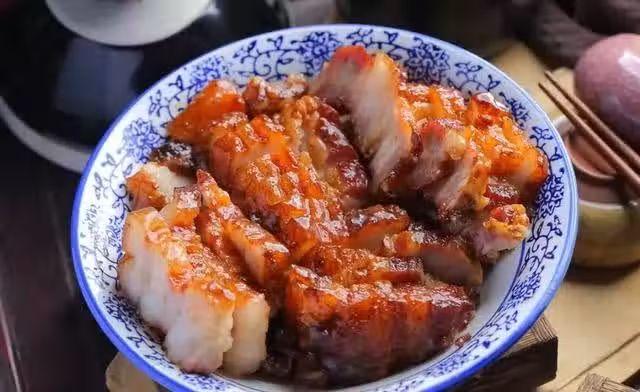 叉燒,是廣東的一道傳統美食,是廣東燒臘中的經典。名字里有個「叉」字,自然是與叉子有關。它是將腌好的豬肉掛在特製的叉子上放入爐內燒烤至熟而成,故得此名。