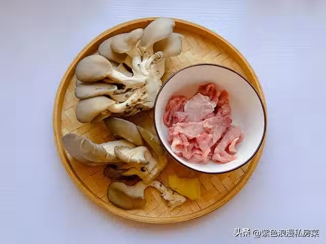 1.準備食材:平菇200g,瘦肉150g,生薑一塊。