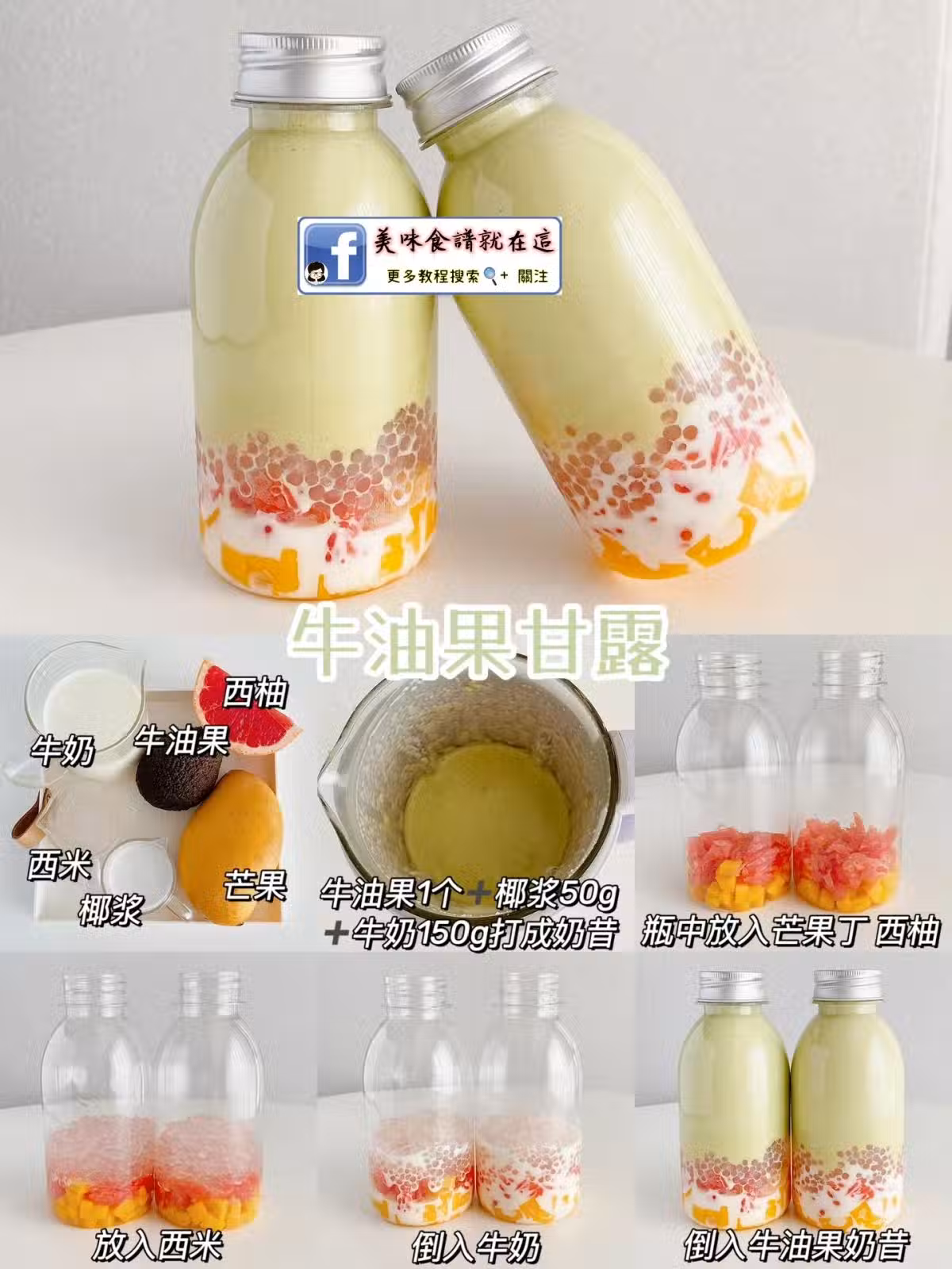 👉牛油果,芒果,西柚,西米,椰漿,牛奶