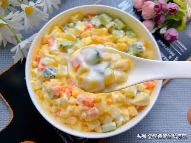 今天要跟朋友們分享的是我最近一直在吃的輕食酸奶沙拉,裡面有雞蛋,有土豆,甜玉米,胡蘿蔔,沙拉醬我就用酸奶來替代了,這樣既減少熱量,又可以提供蛋白質和鈣,而且味道也很棒。雞蛋也是蛋白質和鈣很好的來源,土豆和玉米既營養,又可以增加飽腹感,黃瓜和胡蘿蔔為我們提供維生素和其他的營養。