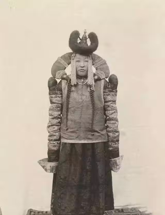 蒙古上層社會的女子,看上去氣場很強大,拍照時她在北京。清朝建立前後,滿族與蒙古族有著相近的生活方式和風俗習慣,自努爾哈赤起雙方就常有會盟、聯姻之事。皇太極時期,正式為歸順的蒙古人編立蒙古八旗。