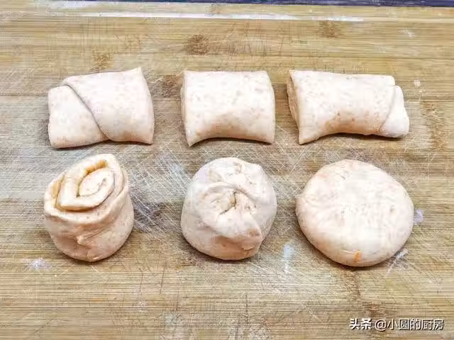 步驟九:將小餅用擀麵杖擀成薄片,如果回縮得很厲害,說明鬆弛的時間不夠,那麼就在鬆弛一會兒。