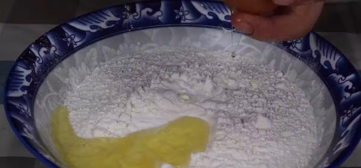 先準備一個稍微大一點的碗,將咱們準備好的300克麵粉全部放到這個大碗中,放入碗中之後咱們再把準備好的雞蛋取出來,先將雞蛋打到另一個碗中,然後將雞蛋清和雞蛋黃分離,將雞蛋清放在麵粉中,將麵粉和雞蛋清充分攪拌均勻,攪勻了之後咱們先放到一旁備用。