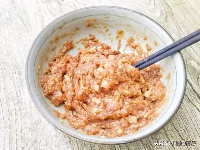 步驟三:最後再加入切成末的蔥拌勻,餡料就做好啦,注意:蔥不要拌入的過早,等開始包的時候再拌入,太早加入會有蔥臭味