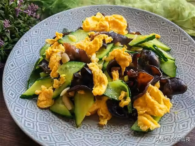 【木耳黃瓜炒雞蛋】所需材料:木耳1把、黃瓜1根、雞蛋3個、油鹽適量、蔥1段、大蒜2瓣、雞精1茶匙、