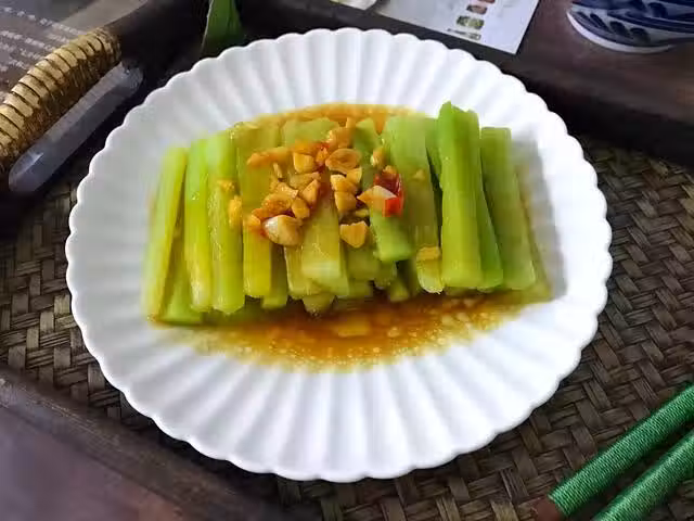 4、芥蘭碼入盤中,倒入調料汁就可以了。