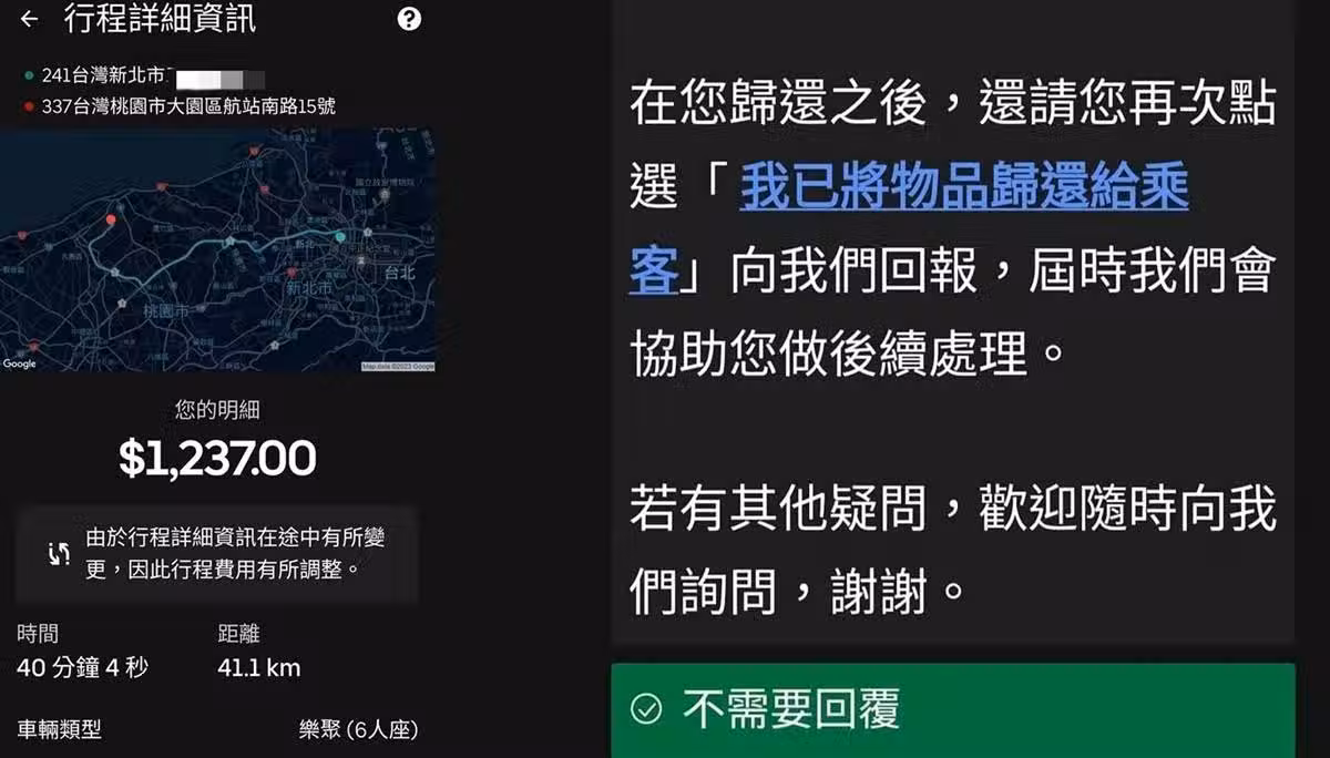 東西忘在車上!Uber司機「開40分鐘趕回桃園機場」乘客豪氣送上萬元小費!