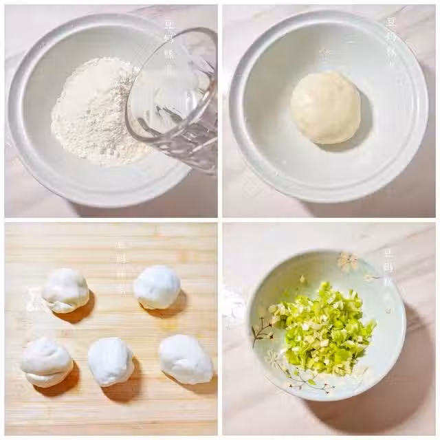 1、麵粉加適量熱水攪拌成絮狀