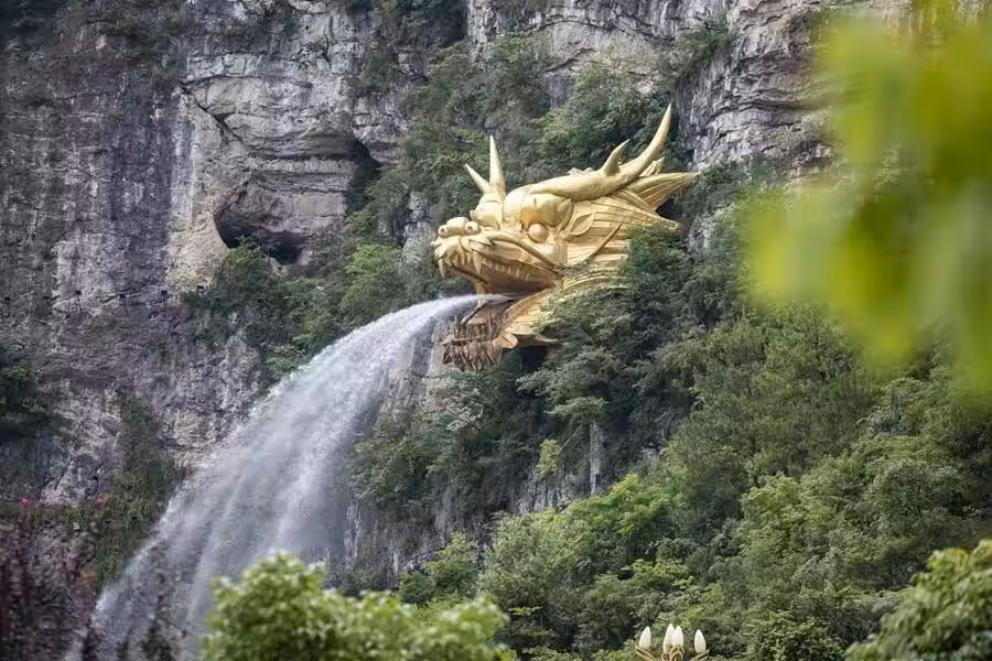 貴州一懸崖上金色龍頭,常年不斷向外吐水,眾人走近一看不淡定了
