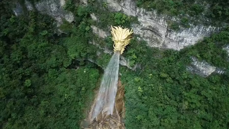貴州一懸崖上金色龍頭,常年不斷向外吐水,眾人走近一看不淡定了