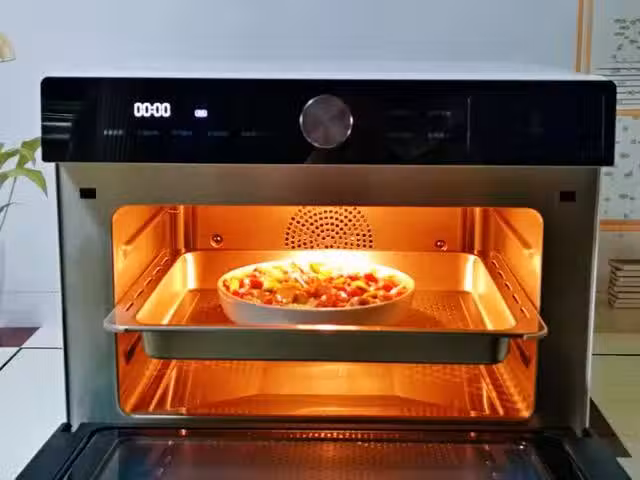 12、烤箱要選擇純蒸的模式,設置合適的時間和溫度。等到食材烤好之後,香味就撲鼻而來,湯汁可以加水澱粉調成湯,再澆在蒸好的排骨上。