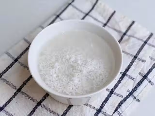 第二步:將浸泡好的大米中水倒掉,把大米倒入破壁機中,加入50g酒釀,加入半碗水,用料理機打成細膩的米糊即可。