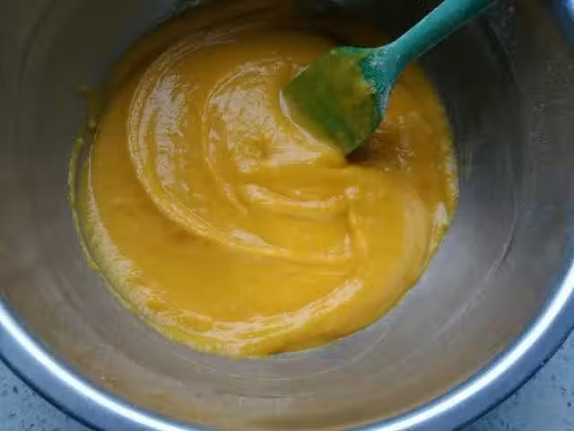 再倒回到剩下來的蛋白霜中,繼續的翻拌均勻,烤箱需要提前預熱。