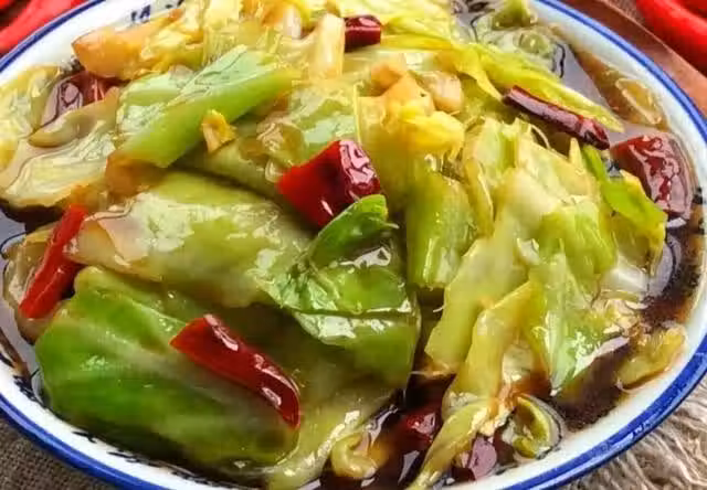 3.鍋中倒油,油燒熱後放入蒜片和干辣椒爆香,再放入包菜,中火煸炒至斷生再放入調料汁,翻炒均勻大火收汁即可出鍋。