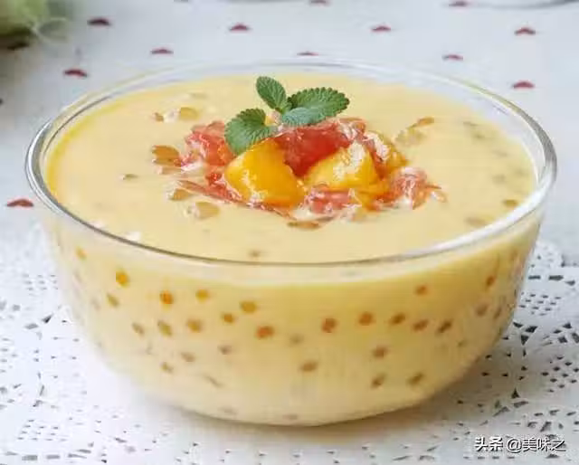 芒果2個、西柚適量、西米80克、椰漿50克、牛奶100克、白砂糖20克。