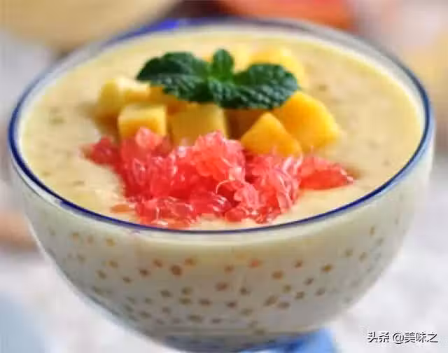 芒果3個、西米100g、西柚半個、椰漿180g、牛奶100g、白糖50g。