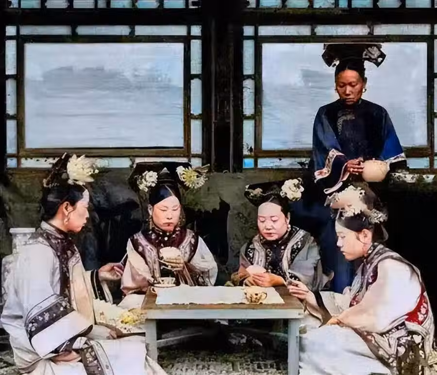 在紫禁城的後宮一個房間內,幾名妃子正在用打牌的方式在消磨時間,雖然是在玩牌,但她們每個人的穿戴都非常的整齊講究,而站在她們身邊的,則是一名拿著茶壺的嬤嬤。此時,牌局應該是到了關鍵的時刻,所以四個人的表情都有一些嚴肅。