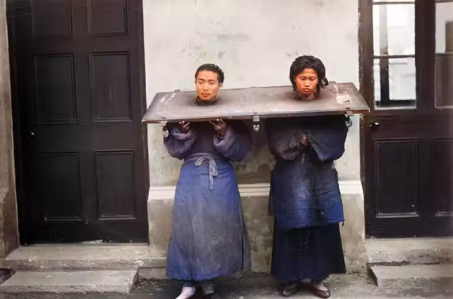 這是楊乃武與小白菜戴木枷的照片。楊乃武與小白菜案, 是清末的一件冤案。在此期間,各種勢力為了自己的利益明爭暗鬥。楊乃武與小白菜的故事雖然有很多版本,但是很耐人尋味。
