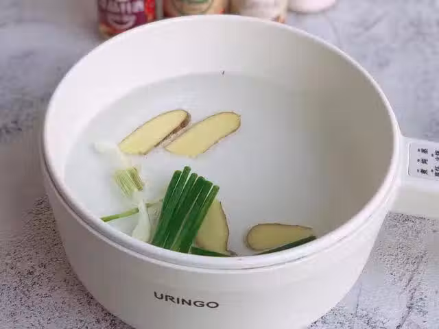 等鍋中水煮沸後,再將蝦倒入,加入1小勺料酒,煮20秒左右的時候,再加入一小勺鹽,加鹽可以使蝦更加入味,吃起來反而更加鮮甜。