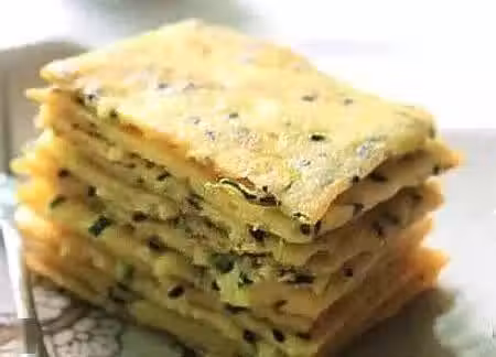 5、保持小火,或者中小火,慢慢烙,直到一面金黃再翻面烙黃;