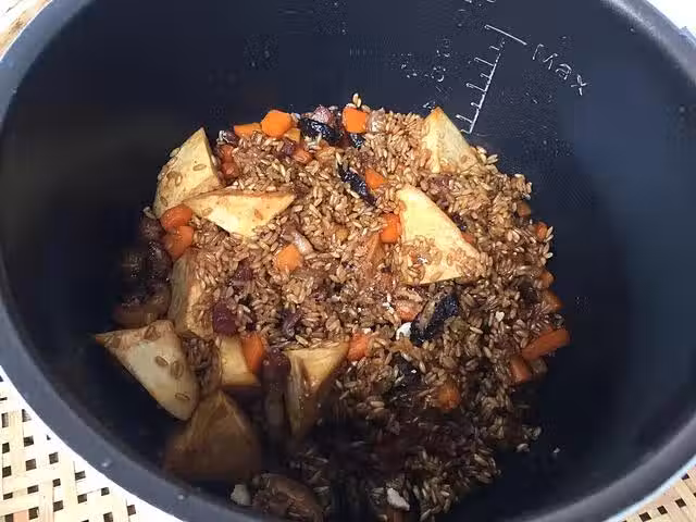 啟動平常煮乾飯的功能鍵即可。等待30分時間~~~~哇,電飯煲散發出的芋頭香,飄滿屋子,連路過的鄰居問,你們家今天煮檳榔芋嗎?這麼香~~