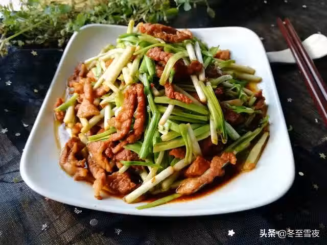 材料:蒜苗400克、豬肉150克、油鹽適量、生抽醬油1湯匙、料酒1/2湯匙