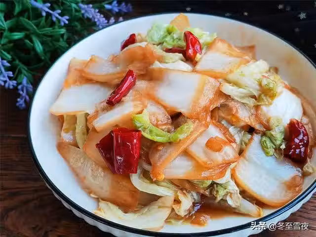 【醋溜白菜】所需材料:白菜心1個、干辣椒5-6個、油鹽適量、蔥1段、大蒜3瓣、生抽1湯匙、白糖半湯匙、香醋1湯匙、雞精1茶匙、水澱粉適量、