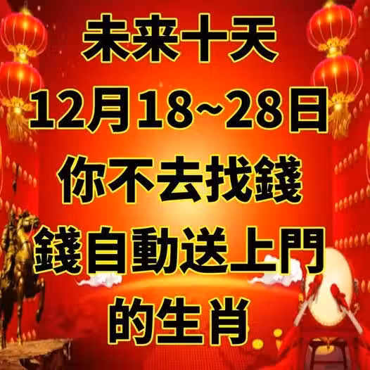 未來十天(12月18~28日)你不去找錢,錢自動送上門的生肖