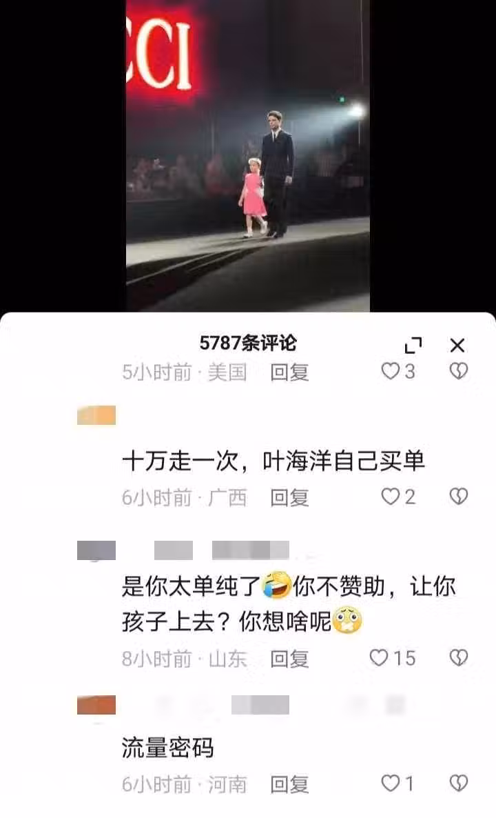 葉海洋被曝花20萬讓混血女兒迪奧走秀,網友質疑:孩子沒爸感覺不正常!