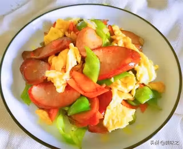 哈爾濱紅腸一根、雞蛋二個、胡蘿蔔半根、青椒一個、大蔥一段、大蒜二瓣、精鹽適量、一品鮮醬油適量。