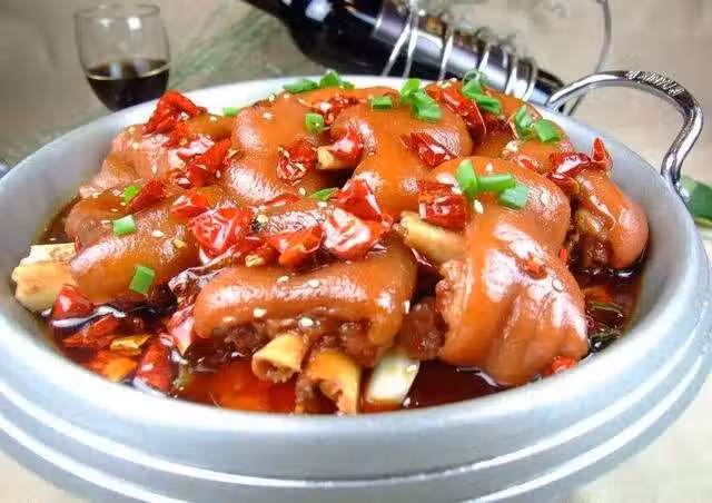 【材料】豬蹄2隻(約600克)、大蔥一段(約20克)、生薑三片(約20克)、花椒1/2茶匙,干辣椒10克、大蒜約20克、香葉2片、桂皮2小段、小茴香1/2茶匙、甘草1/4茶匙、大料2-3粒、草果2顆、丁香5粒左右、生抽1茶匙,老抽1湯匙,鹽1.5茶匙,冰糖1湯匙