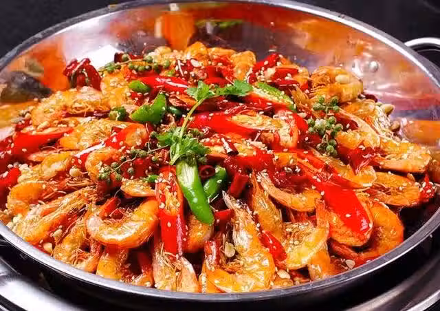 2.鍋內放油,可以適當多些,油七八成熱時放入蝦,炸至變成紅色撈出。
