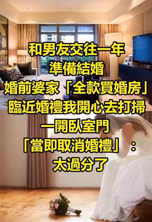 和男友交往一年準備結婚,婚前婆家「全款買婚房」!臨近婚禮我開心去打掃,一開臥室門「當即取消婚禮」 :太過分了