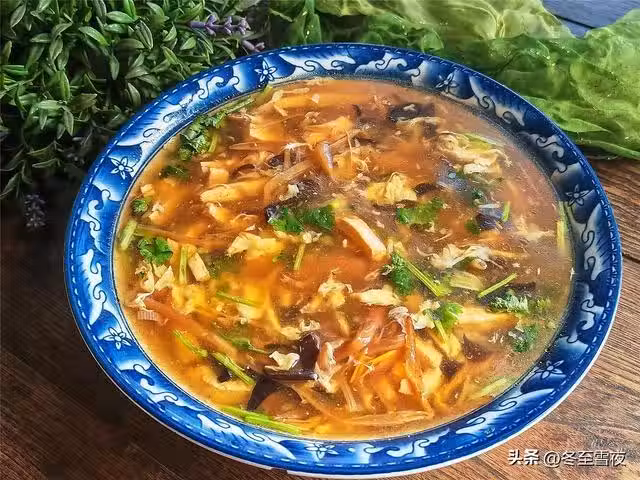 【酸辣豆腐湯】所需材料:雞蛋2個、豆腐1塊、木耳、黃花菜、香菜1棵、油鹽適量、蔥1段、姜2片、香油1湯匙、紅燒醬油半湯匙、白鬍椒粉1湯匙、陳醋3湯匙、雞精1茶匙、白糖少許、