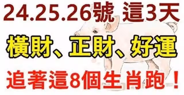 12月24.25.26號這三天橫財、正財、好運追著這八個生肖跑