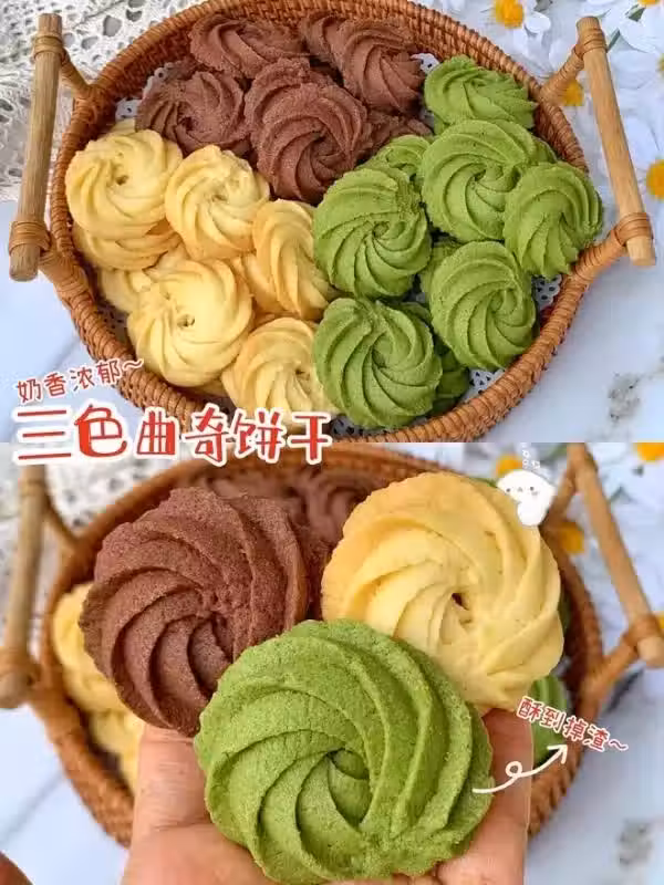 今天跟大家分享一款奶香濃郁,咬一口能酥掉渣的曲奇餅乾,做了三種口味,紋路好看,顏值高,重要的是一次成功,還巨好吃呢