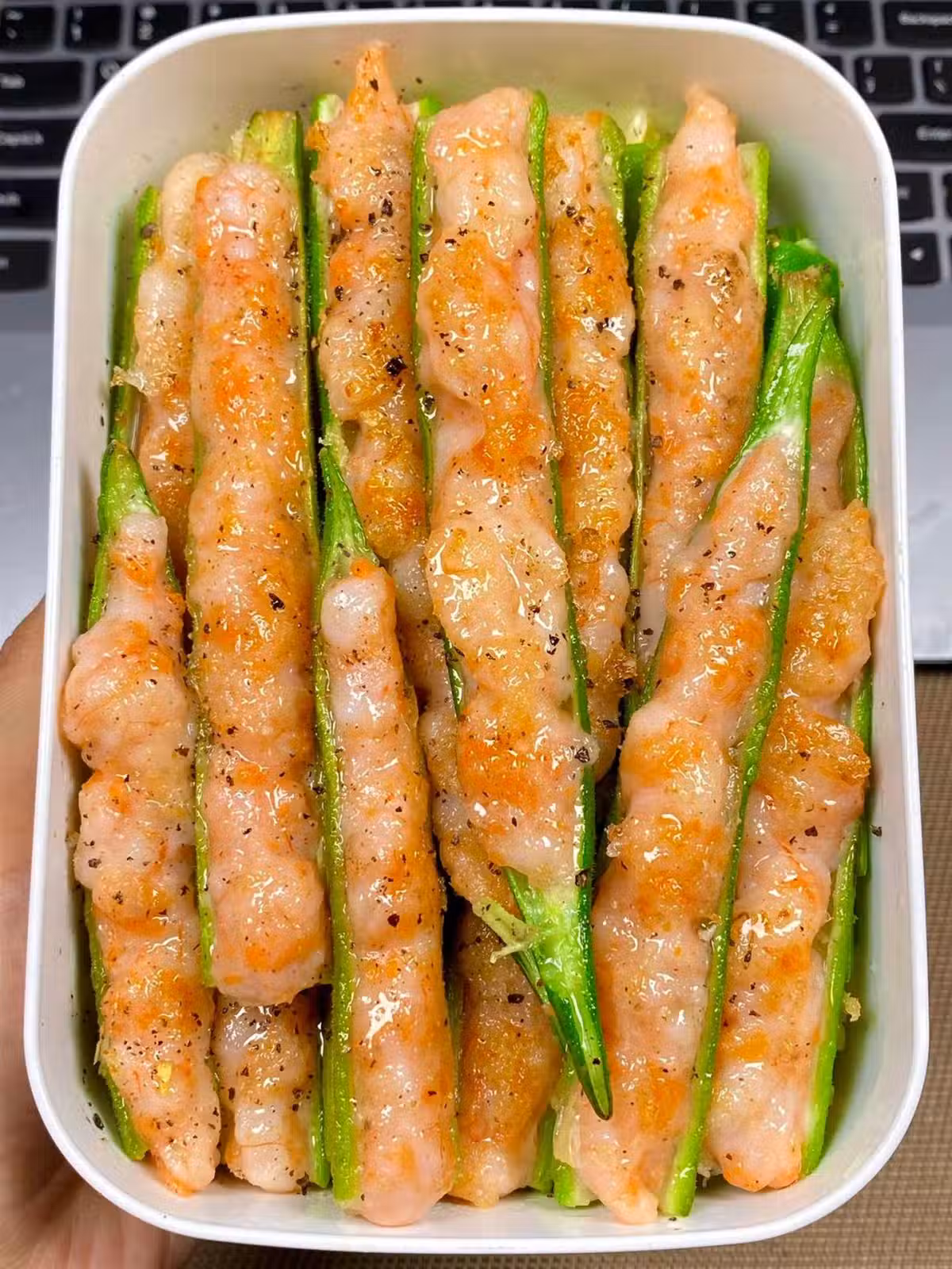 家人們!沒想到蝦滑➕秋葵這麼做可以這麼好吃啊。