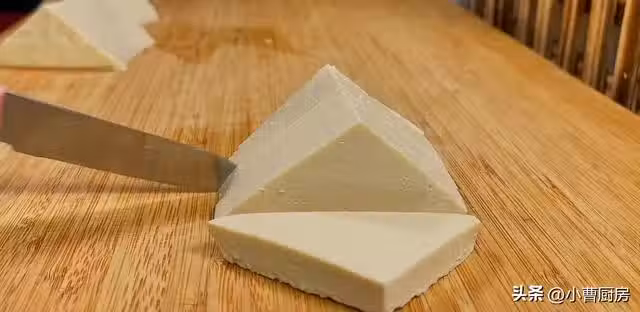 接著再將切好的豆腐依次給它擺放在盤中,放在一邊備用。
