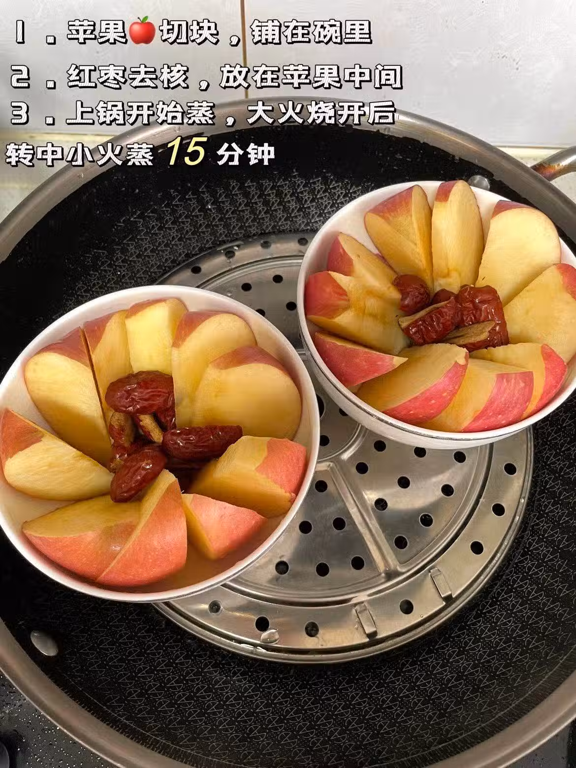 我媽媽之前的中醫告訴她,蘋果得蒸熟了吃,直接吃傷脾胃,當時我還覺得太夸張……直到我媽媽發黃的手心逐漸紅潤,氣色也越來越好,便秘也得到了改善,我才趕緊學著做給我自己和我閨女吃。