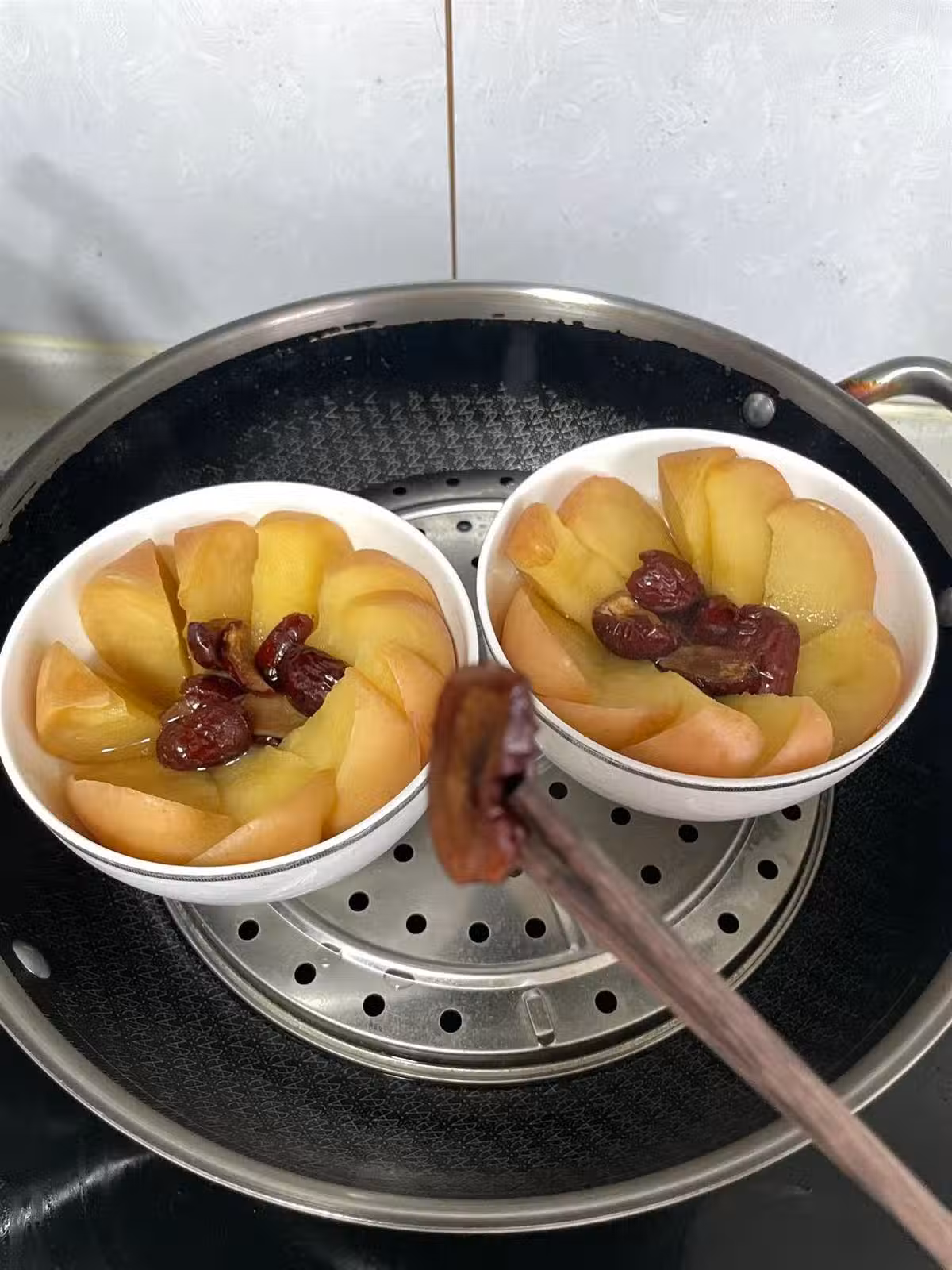 我媽媽之前的中醫告訴她,蘋果得蒸熟了吃,直接吃傷脾胃,當時我還覺得太夸張……直到我媽媽發黃的手心逐漸紅潤,氣色也越來越好,便秘也得到了改善,我才趕緊學著做給我自己和我閨女吃。