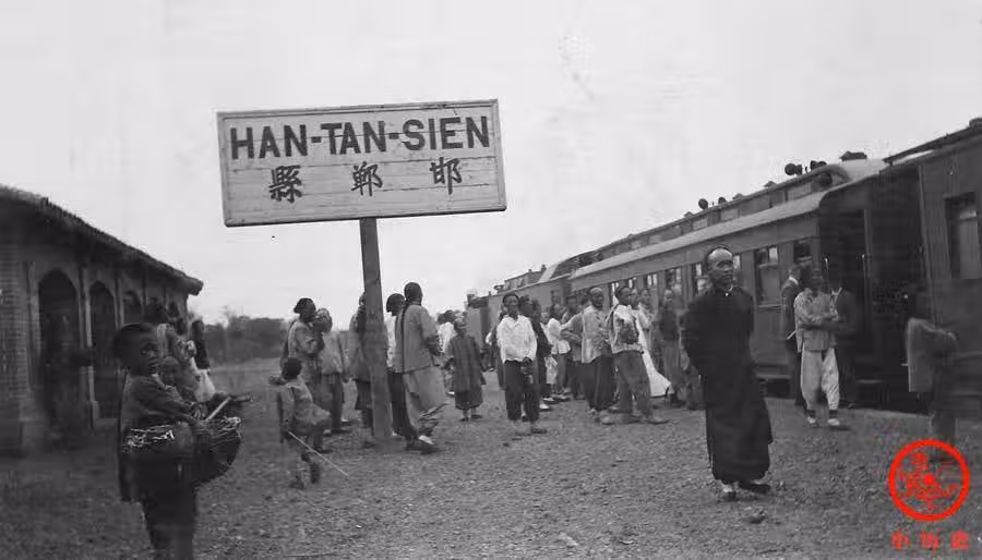邯鄲縣火車站始建於1903年4月,1906年京漢鐵路全線通車,火車站正式啟用。它是清朝滅亡之前京漢鐵路上的幾個主要大站之一。根據照片所見,這座車站非常簡陋,站台上連遮風擋雨的棚屋都沒有,遇到雨雪天氣候車,難免一片混亂。