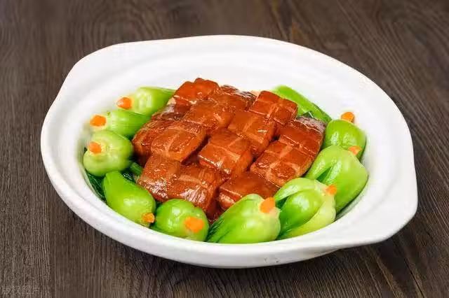 我做了三道菜,第一道東坡肉,上面放的是胡蘿蔔,第二道菜依舊是東坡肉,但是上面放的卻是白菜,第三道菜還是東坡肉,上面放了幾片馬鈴薯。