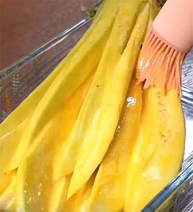 步驟三:鍋中油溫到達180度以後,直接將茄子下鍋炸,炸3分鐘左右,就可以撈出,擠上一點自己愛吃的醬就可以了。香香脆脆的,特別好吃。