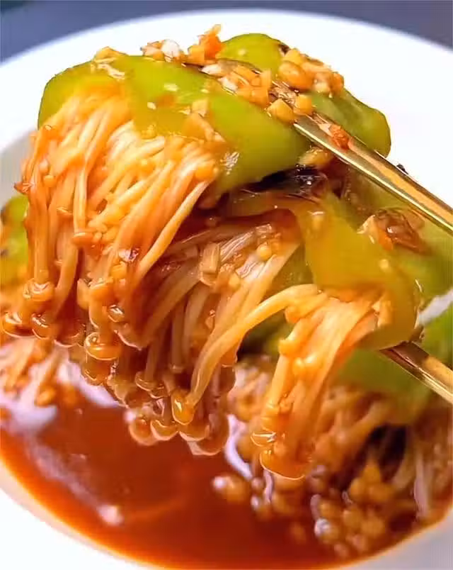 食材準備:青尖椒,金針菇,生抽,老抽,蚝油,蒜末等。